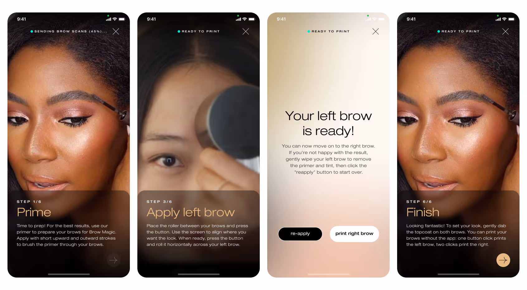 The visuals looked polished but did not fully align. Spacing and components drifted across screens, so the product didn't feel consistent. The scan flow was friendly but its cues left room for doubt. The tutorial ran longer than ideal and did not always match the device prompts. The brow builder worked yet felt cramped on smaller phones, which made fine control harder than it needed to be.
